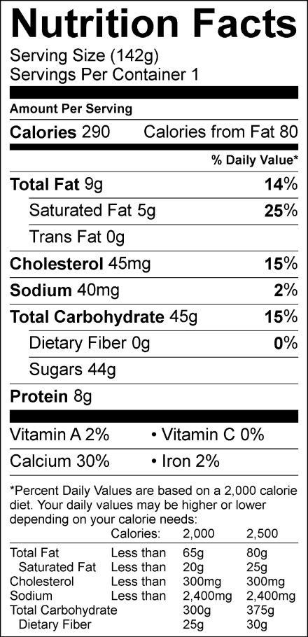 Milk, Condensed Milk (Concentrated Whole Milk, Sugar, Lactose), Gelatin, Natural Flavor (Water, Gum Acacia, Natural Flavors, Citric Acid), Natural Color (Water, Glycerin, Natural Color). Contains Milk